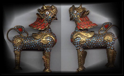 Der Kopf ist beweglich und abnehmbar, innen ist das Tier hohl !