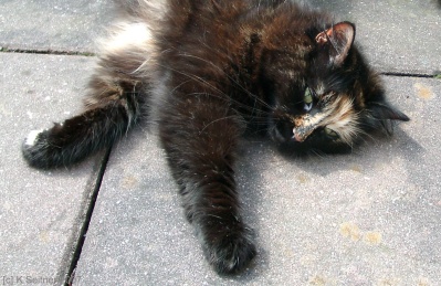 über den Weg liefen, legte sie sich vor ihn und er putzte